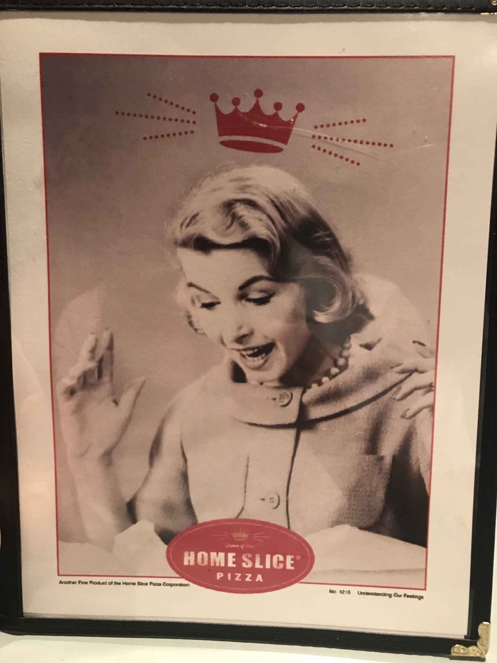 Vintage menu Home Slice Pizza