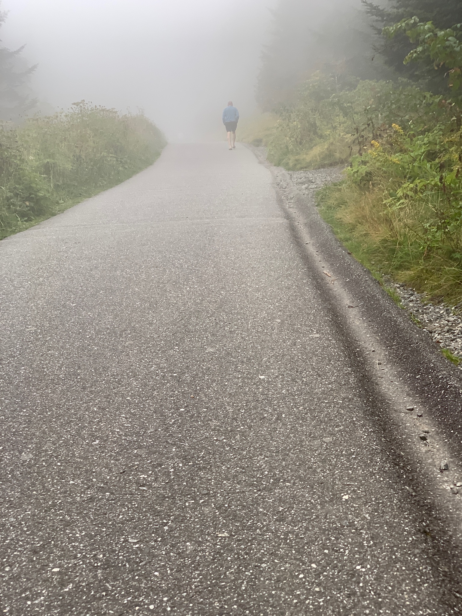 Bud getting lost in the fog up aheadBud getting lost in the fog up ahead