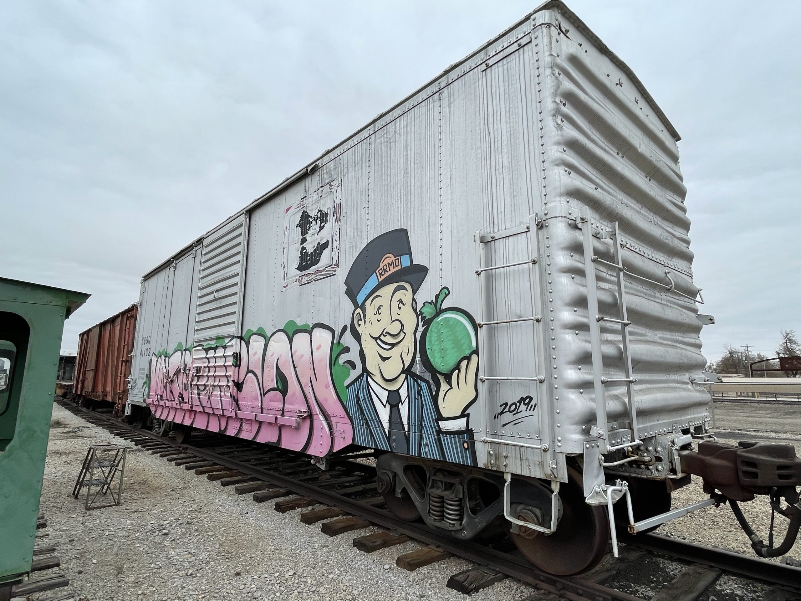 Conductor Frank “Watermelon” Campbell painted on railroad car