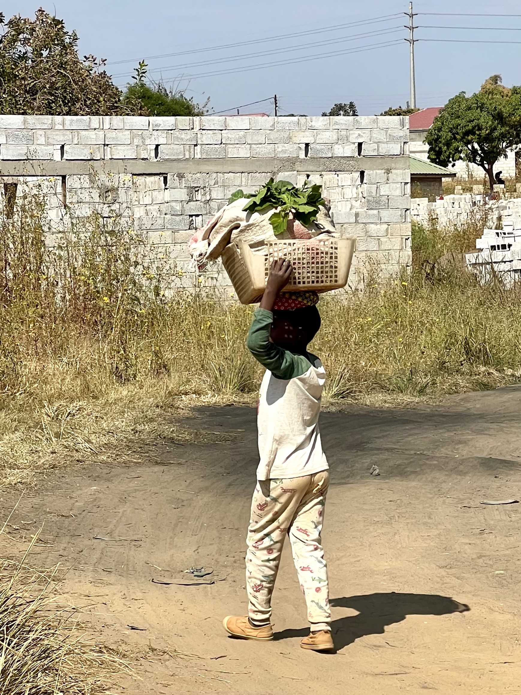 Starting young carrying basket on his head.