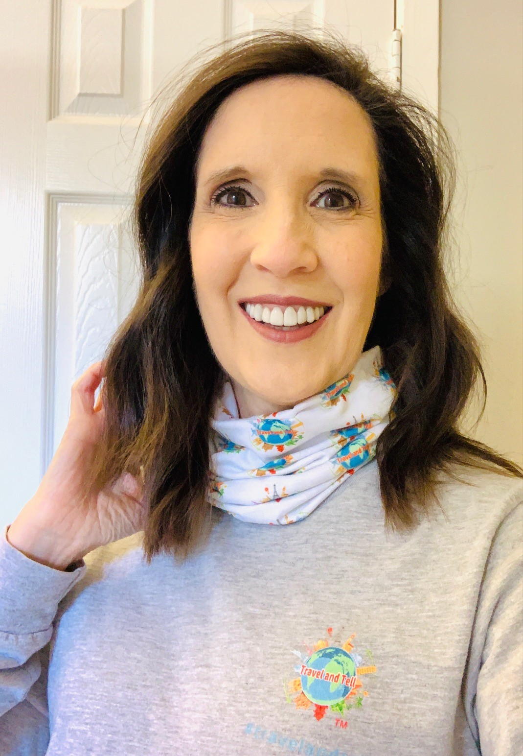 #travelandtell neck gaiter doubles as headband and coordinates with tops#travelandtell neck gaiter doubles as headband and coordinates with tops